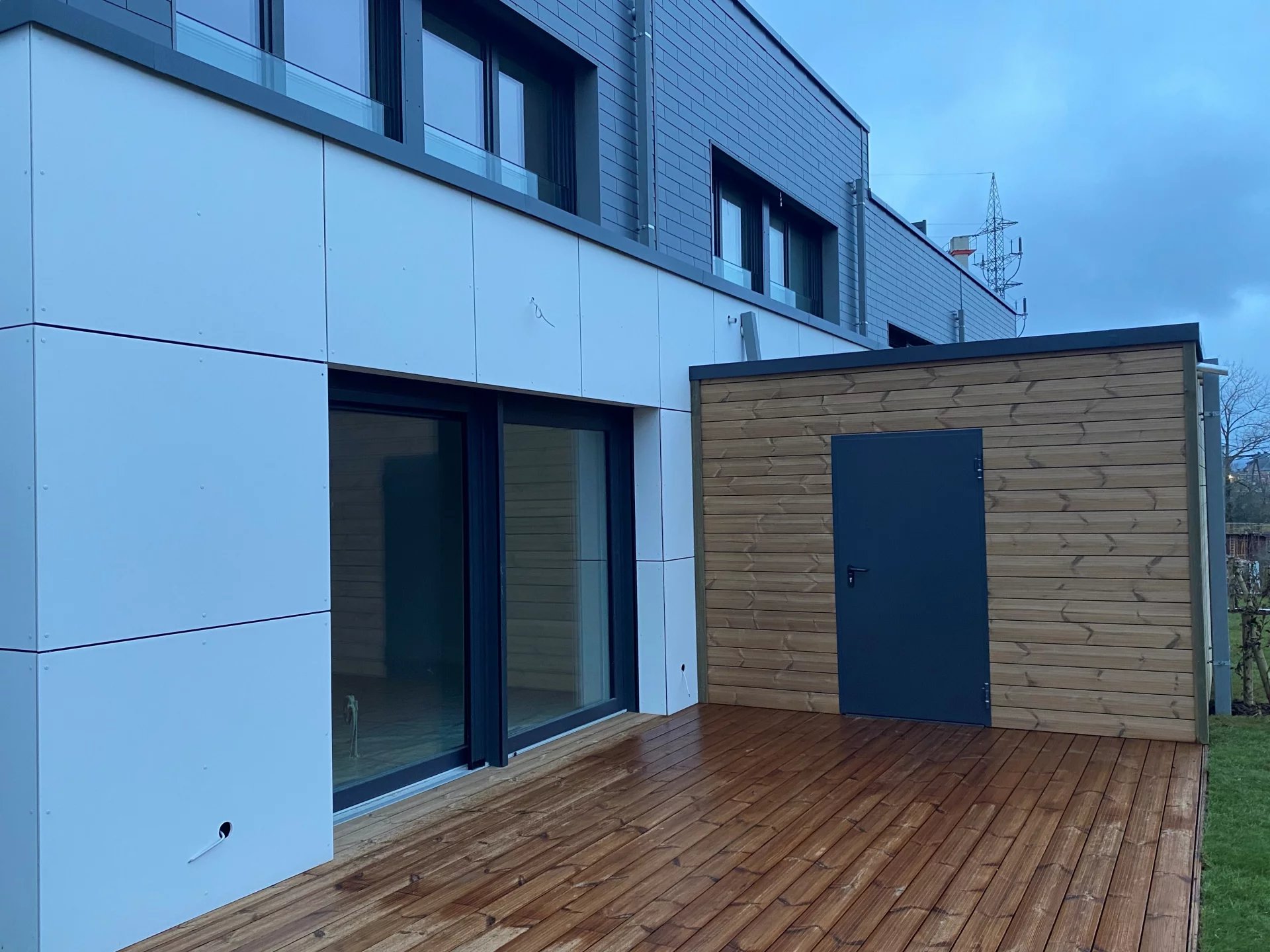 Tracol immobilier vous propose à la (re)vente une très belle maison mitoyenne moderne en cours d’achèvement érigée sur un terrain de 3a74ca située 38, rue Albert Einstein à L-4445 BELVAUX. (Lotissement BELVALLEE)