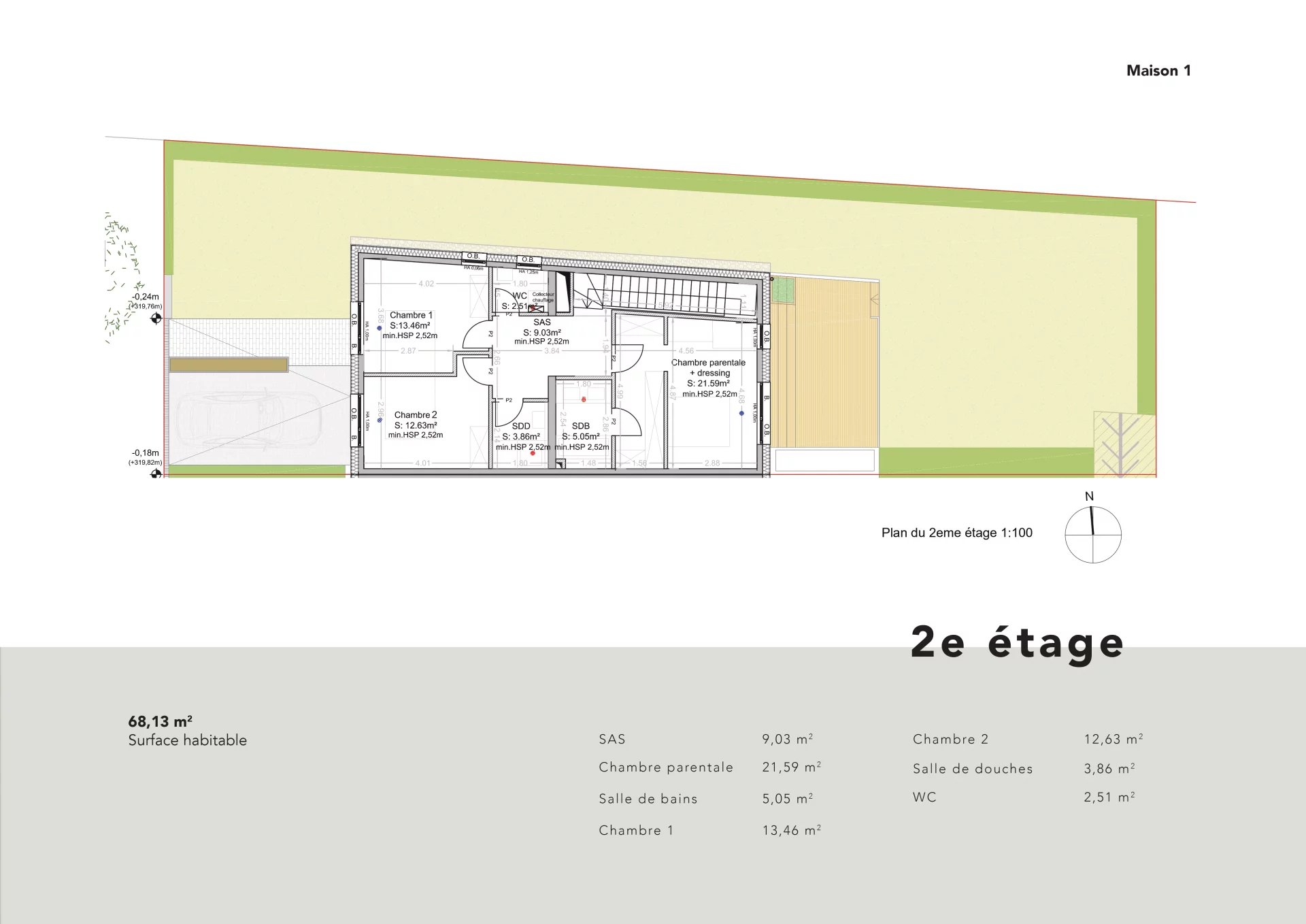 D'une surface habitable de 178.20m2 (surface totale intérieure : 227.44m2), la maison se compose comme suit :