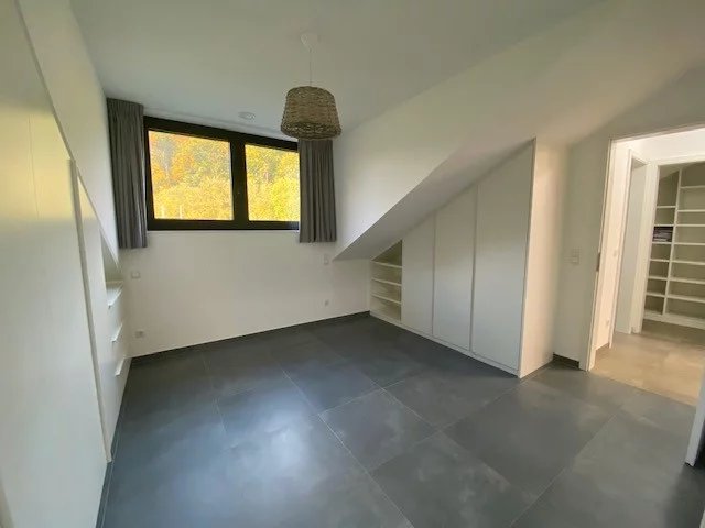 1 chambre à coucher mansardée entièrement aménagée avec des placards