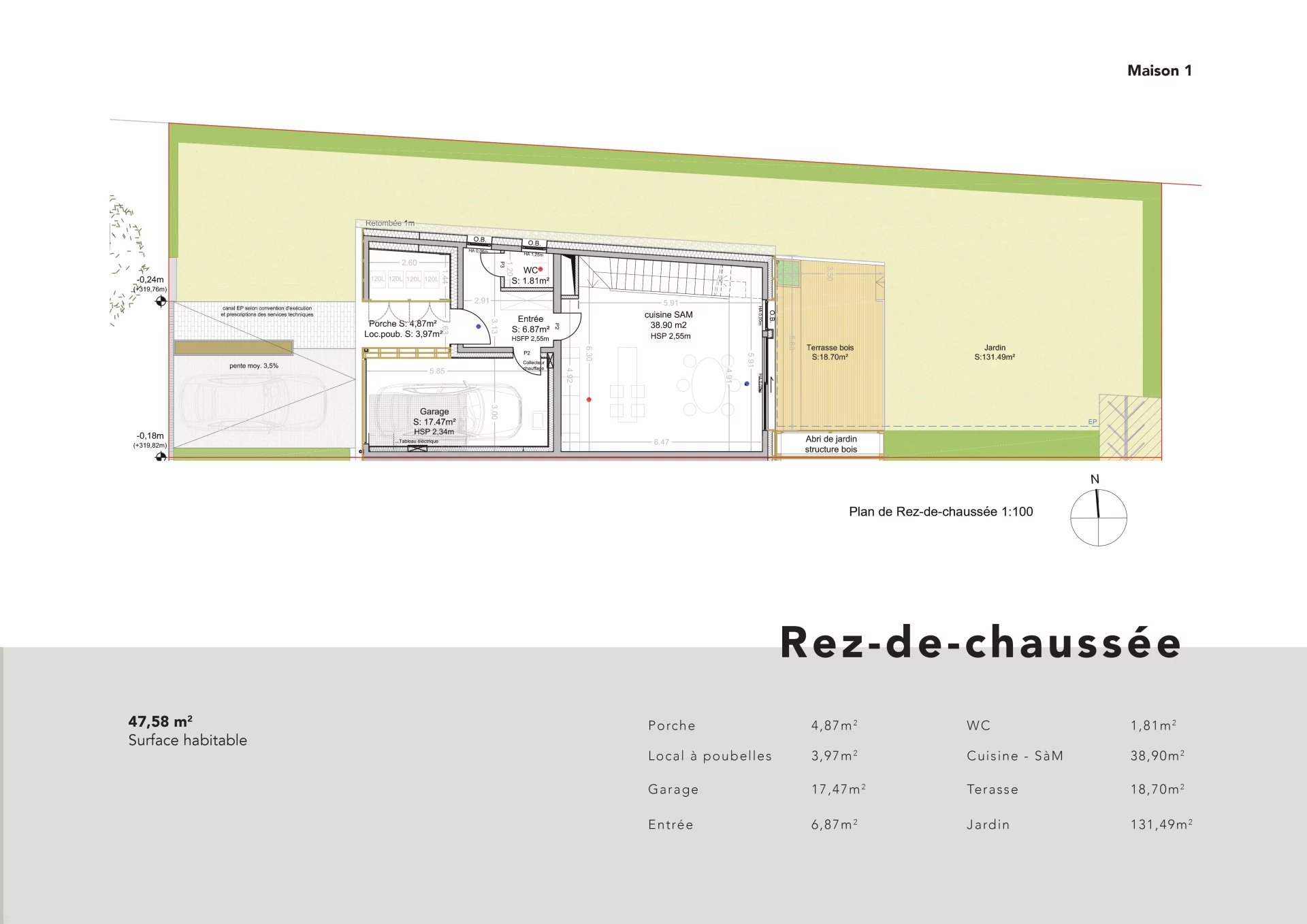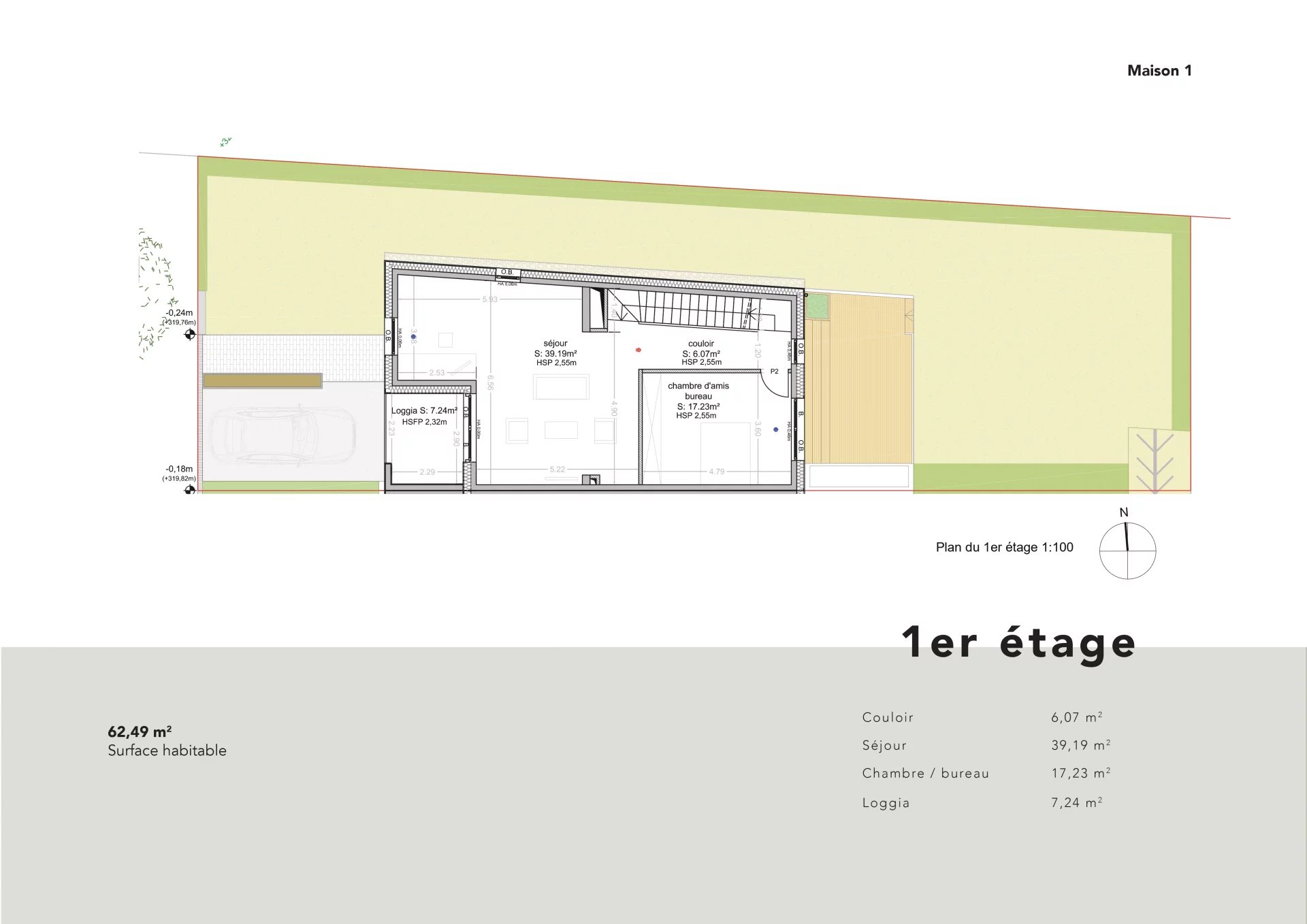 D'une surface habitable de 178.20m2 (surface totale intérieure : 227.44m2), la maison se compose comme suit :